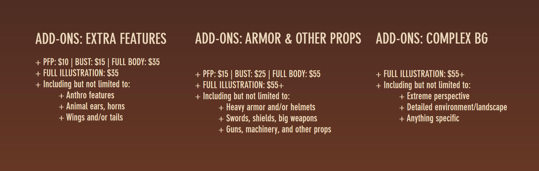 Addtl Char: Bust - $85 | Full Body - $100